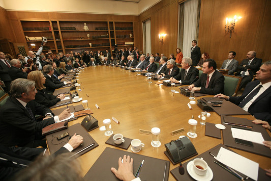 Από 36 υπουργούς του ΠΑΣΟΚ, 6 στελέχη της ΝΔ, 4 Bουλευτές του ΛΑΟΣ και 1 πρώην δικαστικό αποτελείται η νέα μεταβατική κυβέρνηση υπό την προεδρία του Λουκά Παπαδήμου.